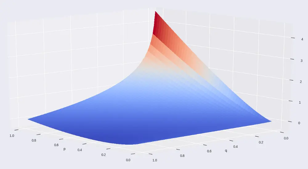 让我们通过绘制出其图像来看一下我们的损失函数(我们称之为 Kullback–Leibler 散度)的影响,另外来检查一下没有求和部分时的公式(3)。