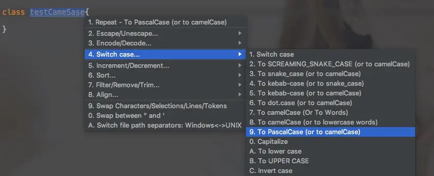 - 转换为camelCase (或转换为Words)