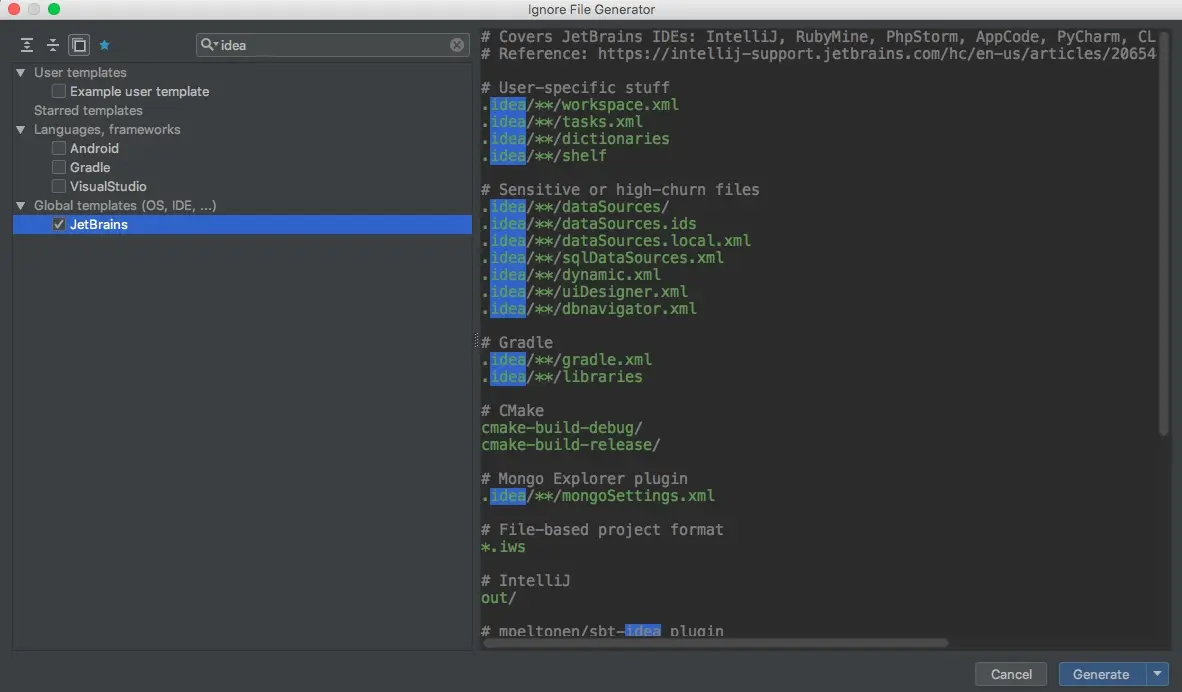 这里推荐一个好用的插件.ignore,他可以帮我们方便的生成各种ignore文件。