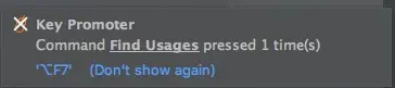 Key Promoter X 是一个提示插件,当你在IDEA里面使用鼠标的时候,如果这个鼠标操作是能够用快捷键替代的,那么Key Promoter X会弹出一个提示框,告知你这个鼠标操作可以用什么快捷键替代。