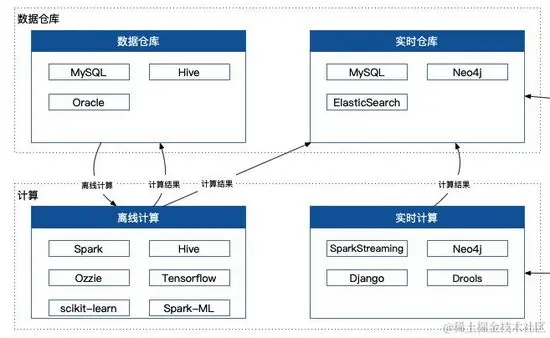 数据保证了,那么计算就是这套架构的核心之处,从大的角度来看可以分成离线计算和实时计算。