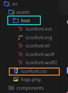 就是找不到这些字体,从iconfont下载的字体代码 ,会有几个字体文件,你新建个font文件夹在assets 目录里面.