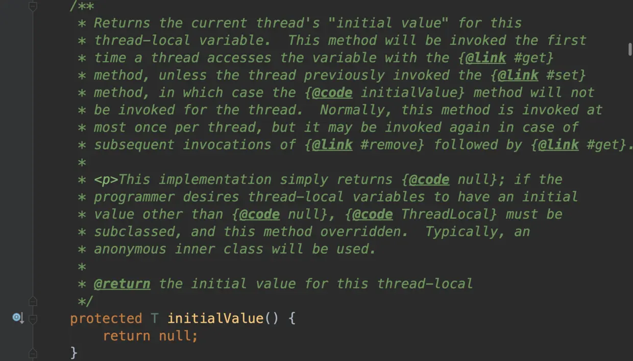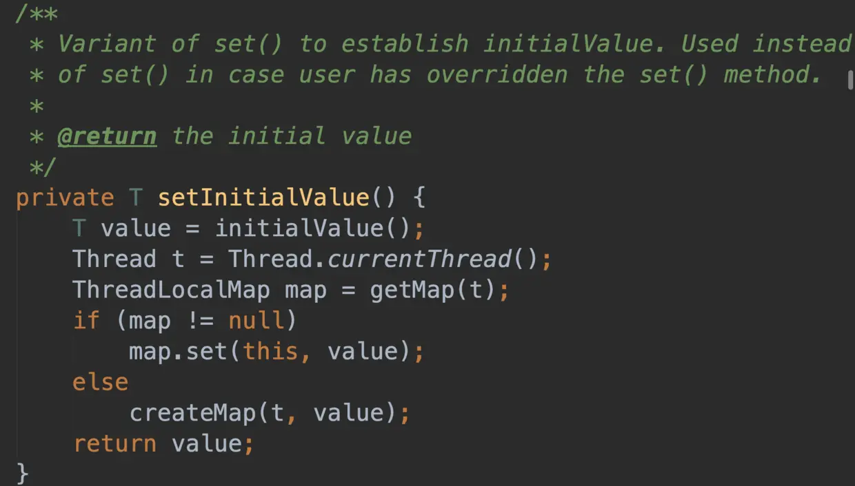 如果 e==null,依然会执行到setinitialValue()setinitialValue() 的源码如下: