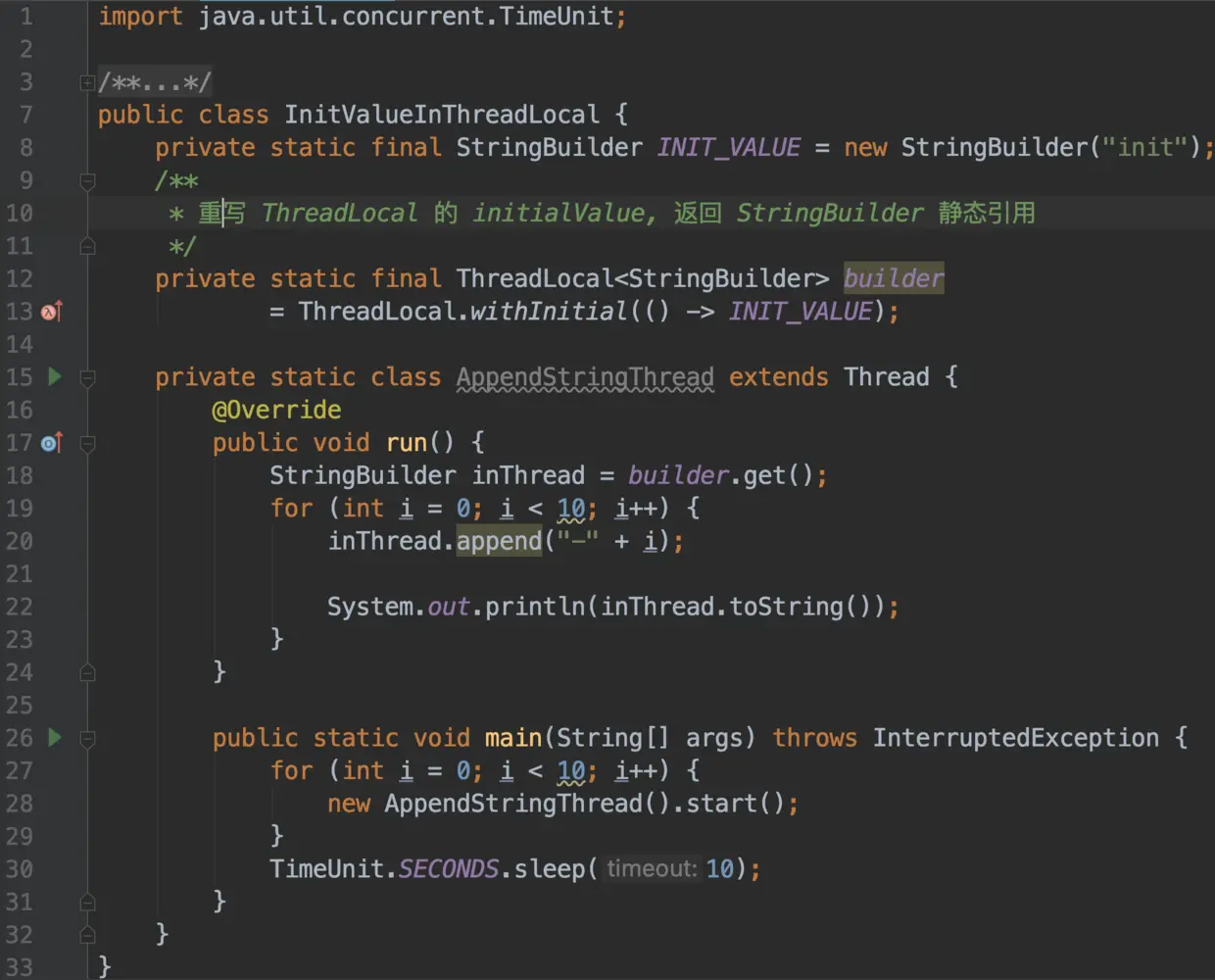因为CsGameByThreadLocal中使用的是Integer 不可变对象,所以可使用相同的编码方式来操作一下可变对象看看