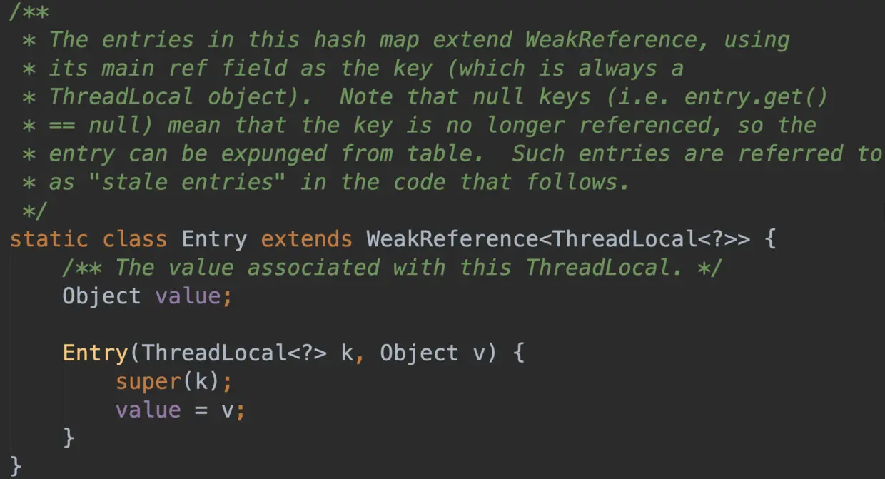 static class Entry extends WeakReference<ThreadLocal<?>> {