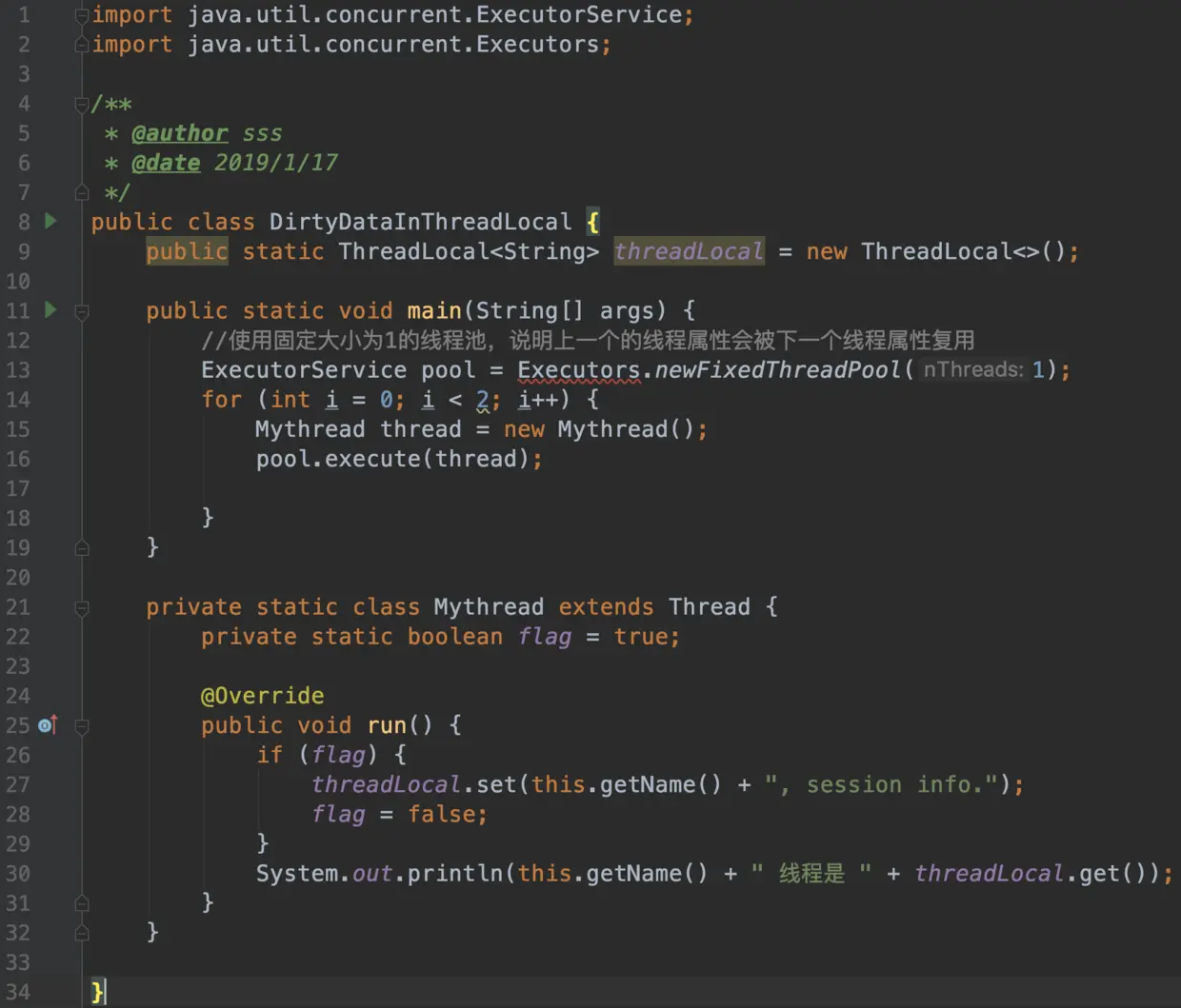 不过,ThreadLocal无法解决共享对象的更新问题,下面的实例将证明这点.
