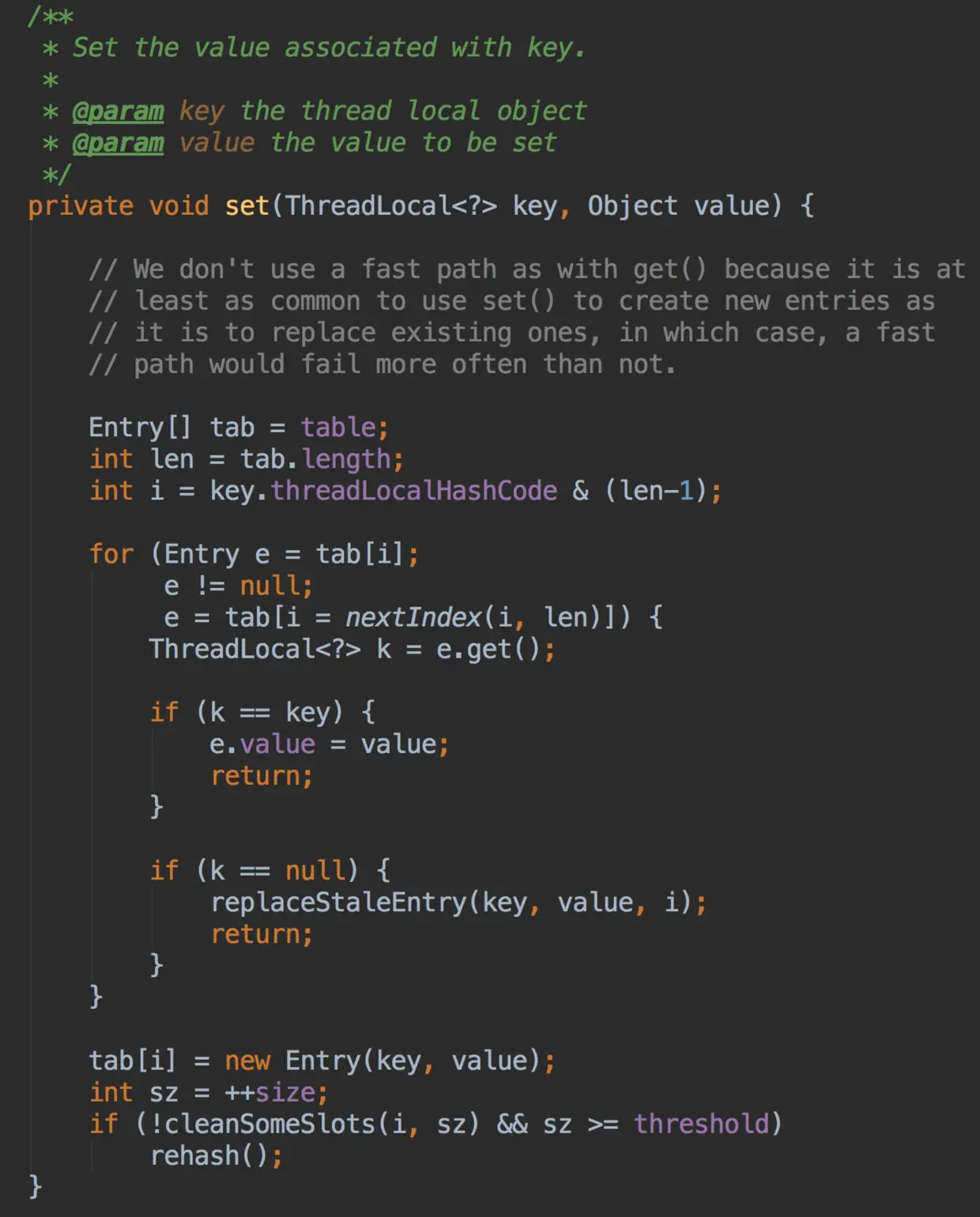 private ThreadLocalMap (ThreadLocalMap parentMap) {