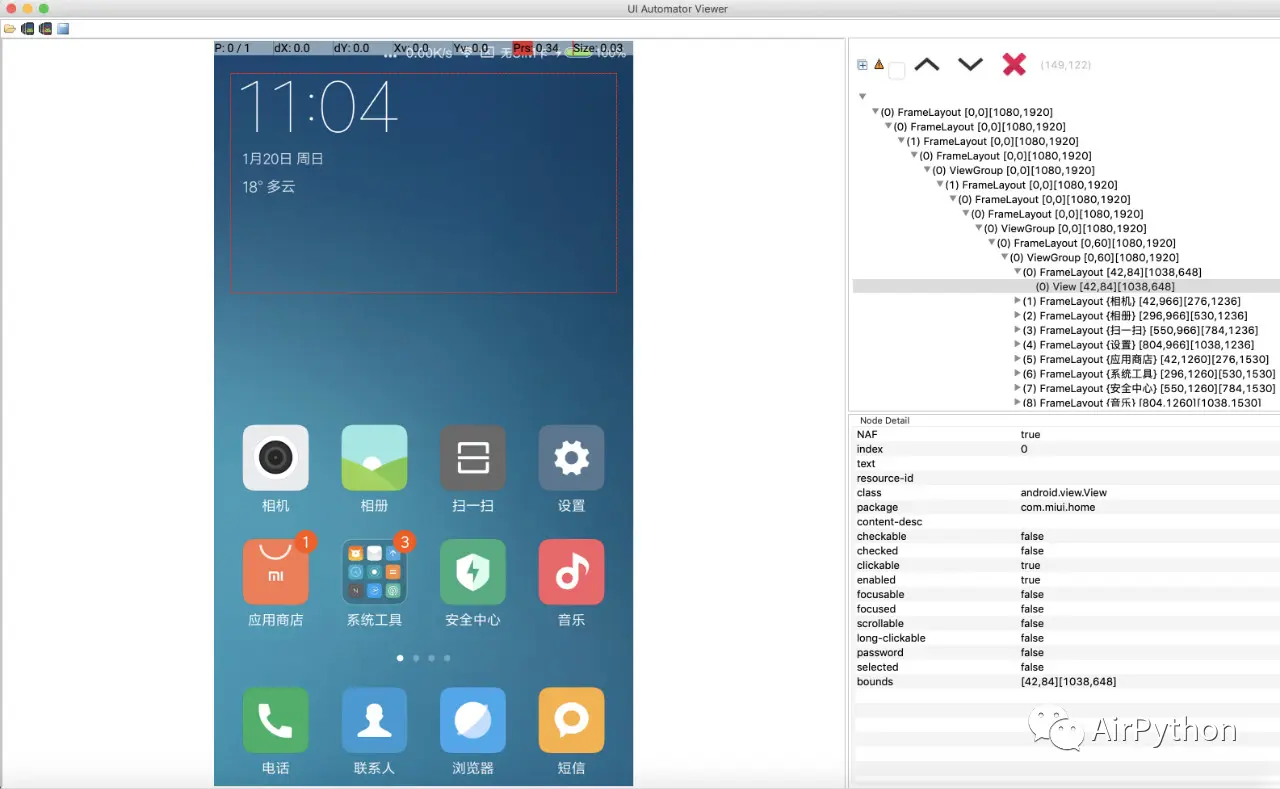 接着使用 Android SDK 自带的工具 uiautomatorviewer 获取到元素信息,使用 Appium 中的 WebDriver 去操作 UI 元素。