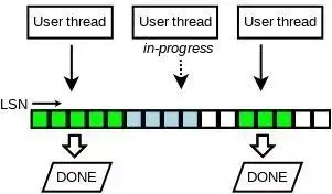 这种无锁化的重构使得不同的线程在写入redo_log_buffer时得以并行写入,但因此带来了log_buffer不再按LSN增长的顺序写入的问题,以及flush_list中的脏页不再严格保证LSN的递增顺序问题。