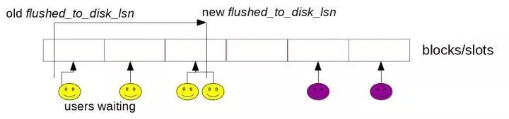 8.0中采用了一个分片的消息队列来通知用户线程,比如用户线程需要等待flushed_to_disk_lsn >= X那么就会加入到X所属的消息队列。分片可以有效降低消息同步损耗及一次需要通知的线程数。