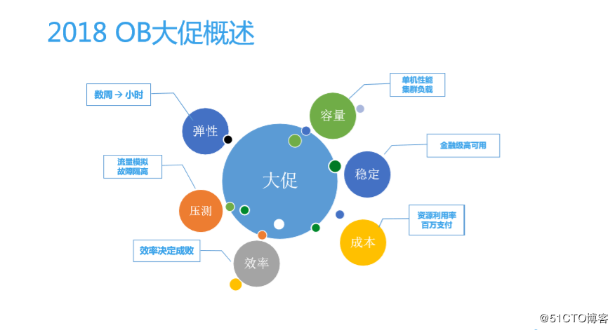 对于OceanBase数据库而言,在大促面前需要面对来自容量、稳定、成本、效率、压测和弹性这6个方面的挑战: