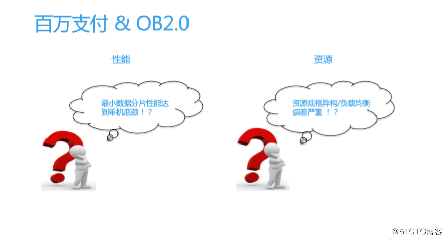 支撑百万支付目标要做什么事情呢?从整个链路上来说的话,要看哪一份资源在扩展性上有瓶颈。扩展性上的瓶颈可以认为谁带数据状态,谁就是最难扩展的。实际上是想利用的服务器是无状态的,因为它没有自己一个真实的业务属性。那可以认为应用服务器的瓶颈就在于它所在的机房的瓶颈,所以服务器是不会成为百万支付的瓶颈的。那么瓶颈只可能在数据库上,因为一个人的数据只有一份,只能用在应用服务器,由于应用服务器的服务能力是有上限的,如何打破上限?下面分别从性能和资源角度进行了讨论。