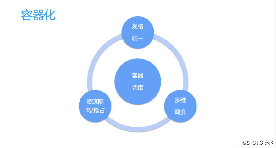 容器化是必要的。容器化中最关键的三点分别是规格归一,资源隔离,抢占和多纬调度。