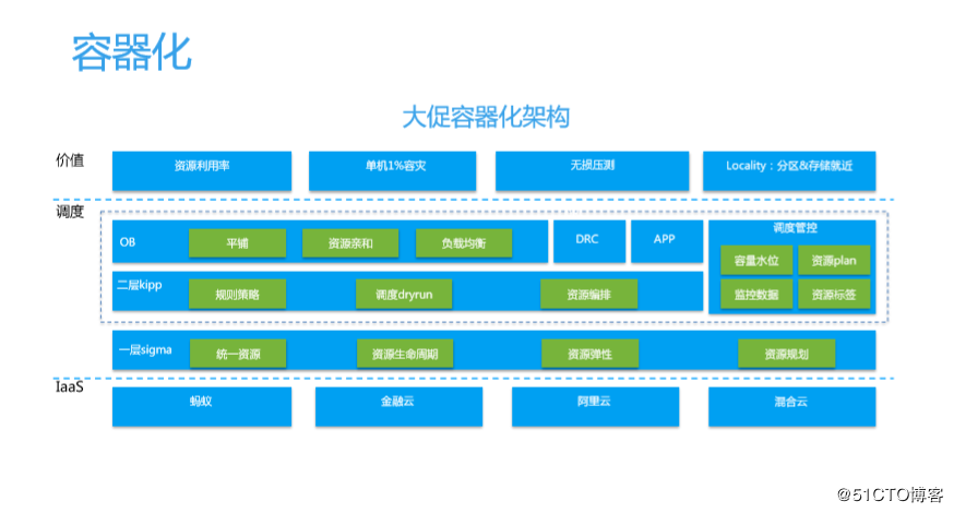 IaaS层。包括金融云,阿里云以及混合云,在任何一个云上都要构建容器化的架构。