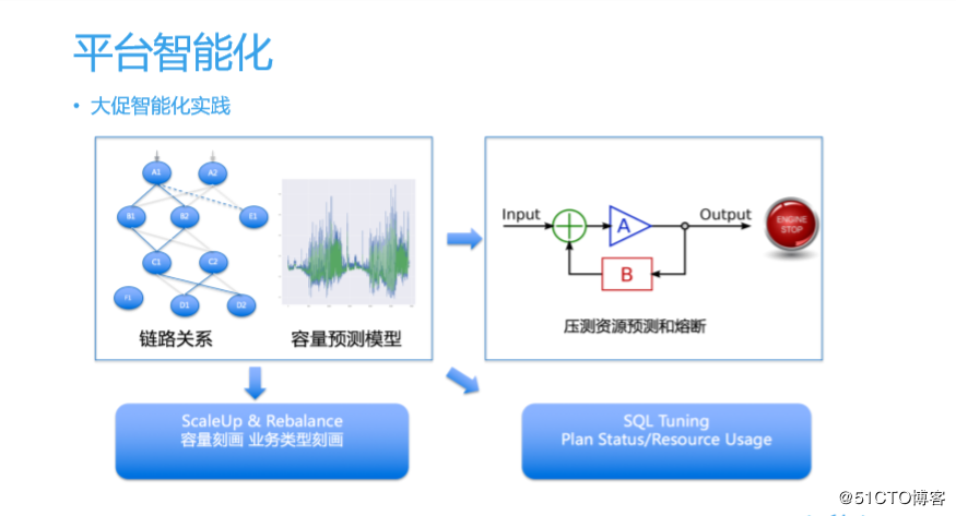 大促常态化。目前支付宝一年下来大促有十几次,平均一月一次。大促的稳定性要求很高,流程性很强,那怎么保证每个月大促的平稳?传统方法做简单的扩容,成本浪费。所以要将大促的6个点固化,朝智能化方向走。