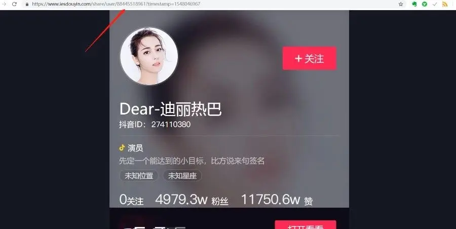 1). 点击迪丽热巴个人主页