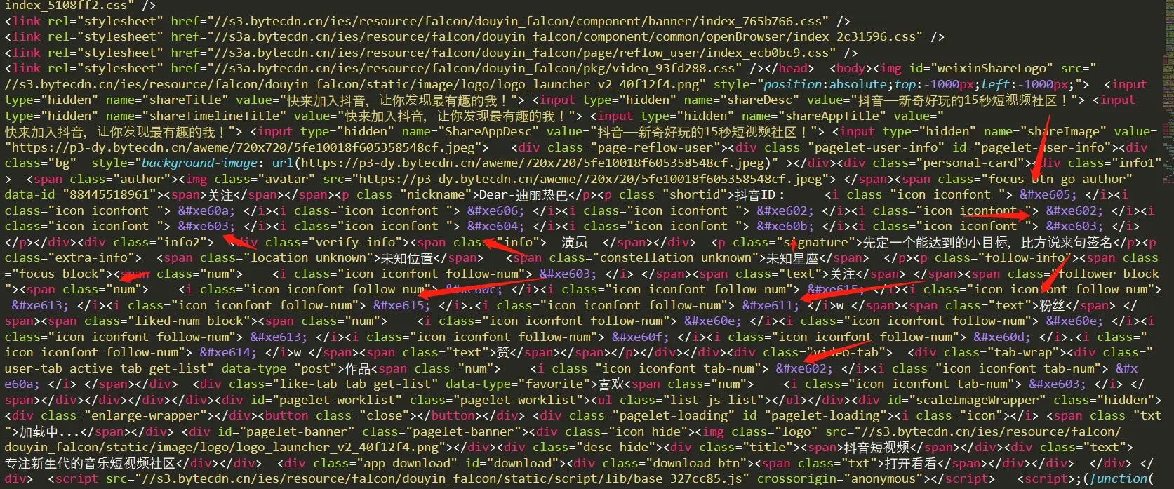 抖音的字体反爬是在一个分享个人主页的链接中,别的链接暂时没有测试,不过破了一个其他的也就破了。