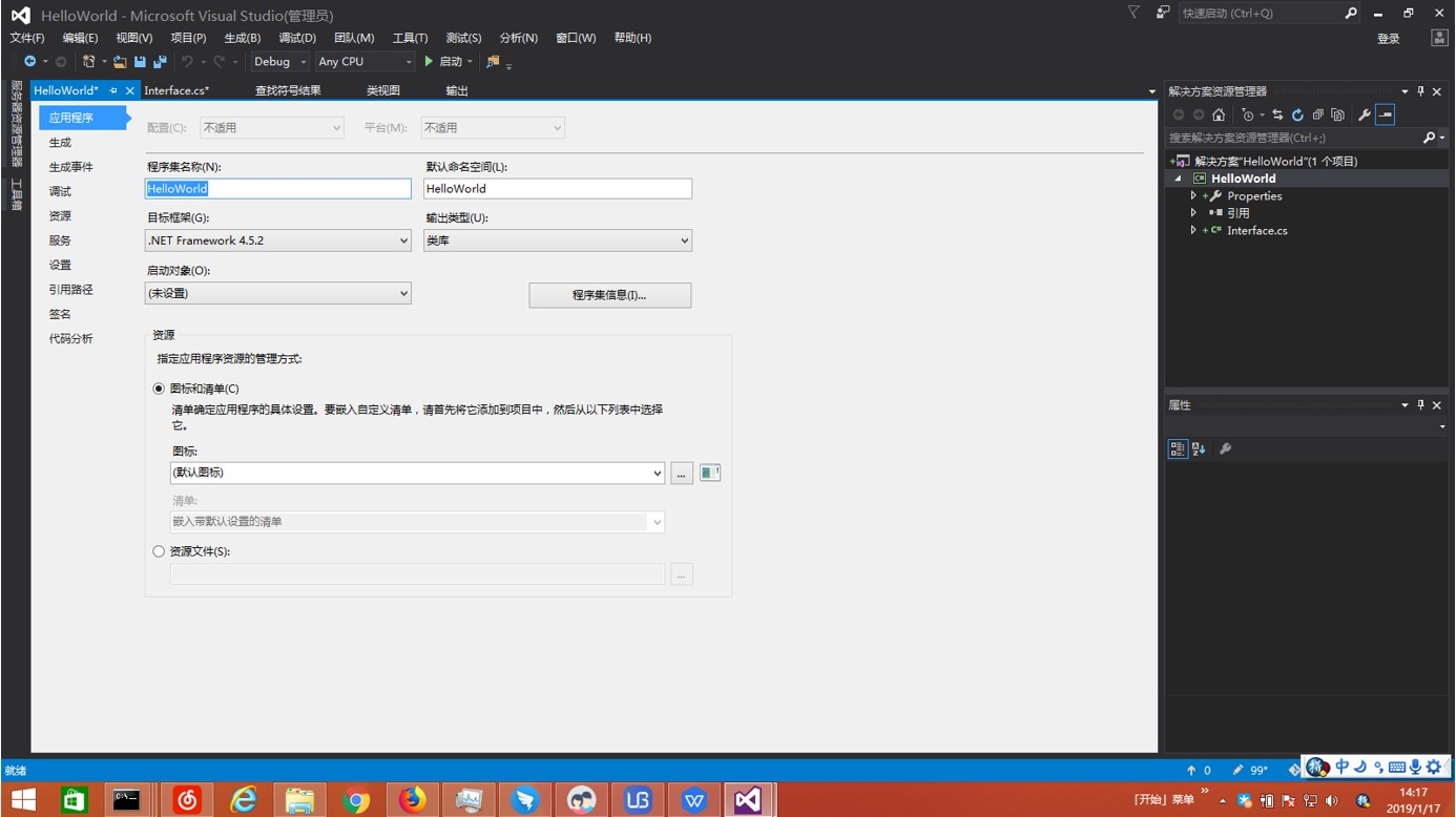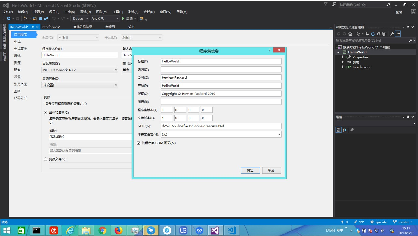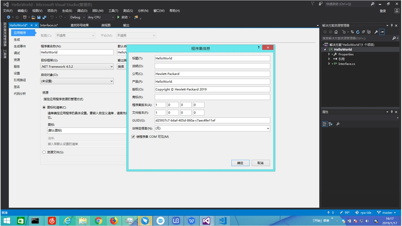 程序集名称 与 默认命名空间 修改为 “<插件名>”(扩展名 使用英文字符)