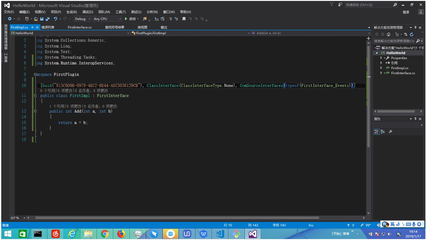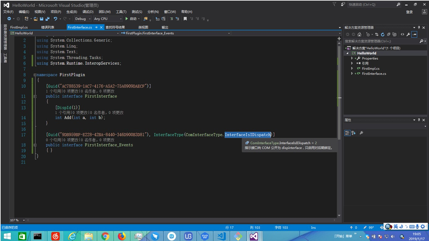 [DispId(1)]为函数的标识。如果有多个函数可相应的在函数前面加[DispId(2)], [DispId(3)]