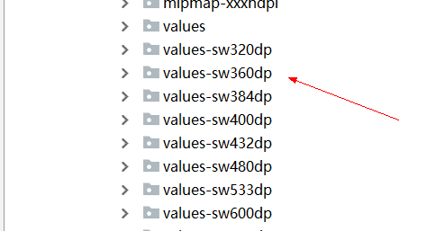 而这种diemns引用,在不同的values-sw<N>dp文件夹下的数值是不同的,比如values-sw360dp和values-sw400dp,