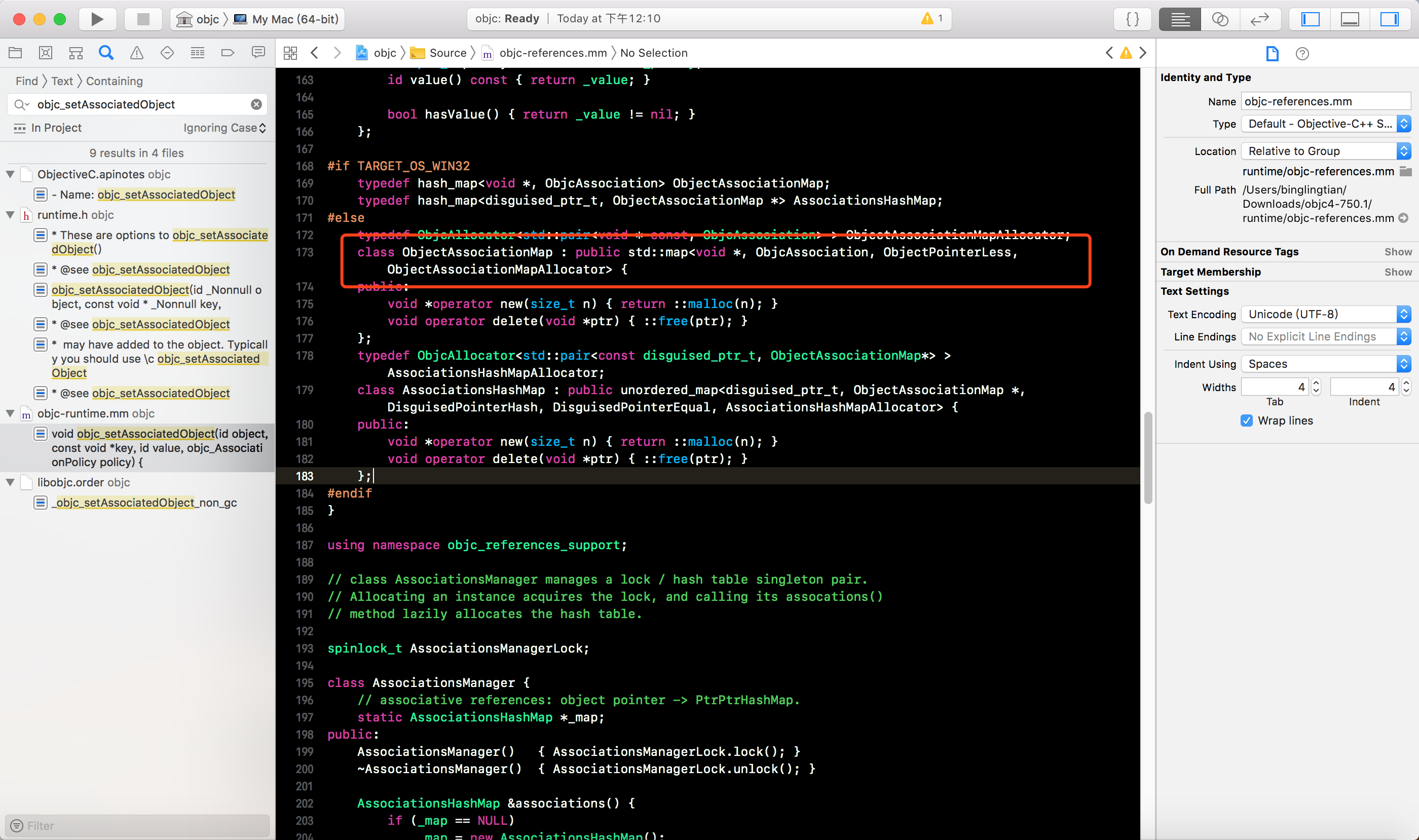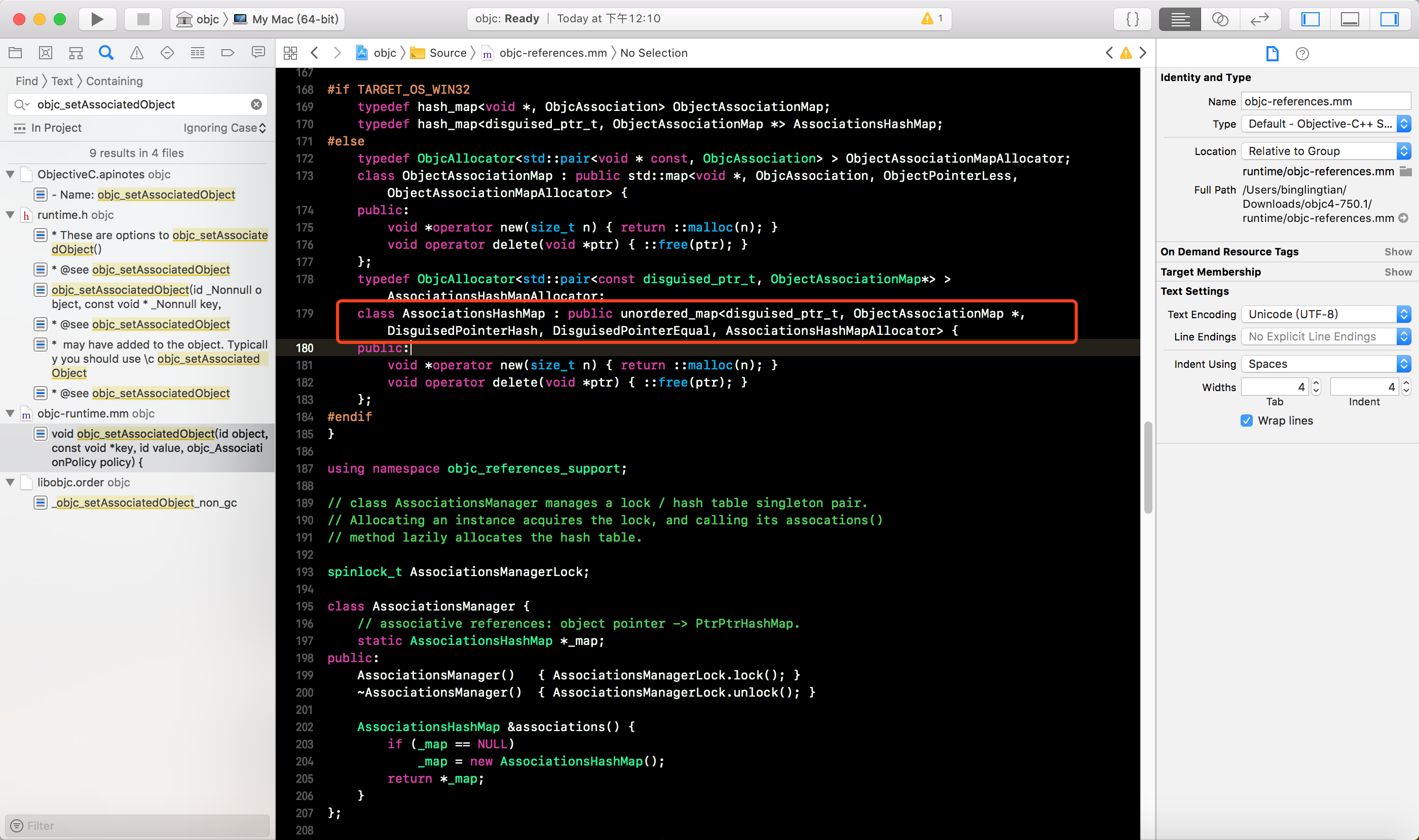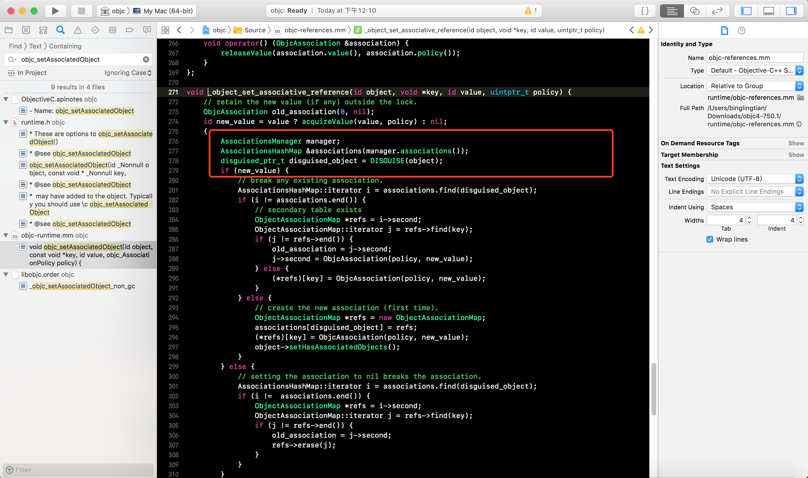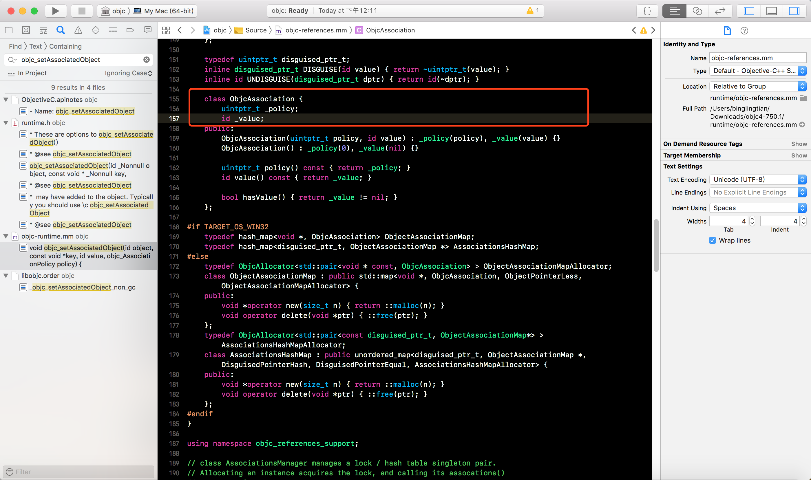 下载并打开OC的底层源码, 搜索