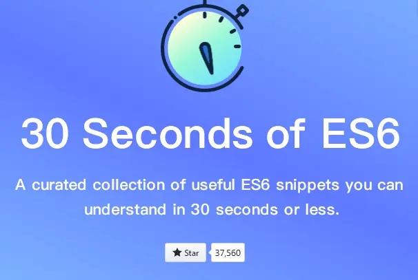 30 seconds of code 是一个非常优质精选的 JavaScript 项目 ,总结了大量的使用 ES6 语法实现的代码块,项目的设计目标就是更简洁,更高效,更快速的实现基础代码模块,碎片化学习实用干货, 30 秒掌握一个高质量 ES6 代码块 。