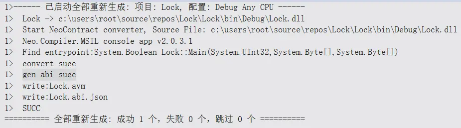 不得不说NEO开发团队这块做的还是蛮好的,虽然这个编译的过程灰常复杂,但是操作起来确实很简单,直接右键项目选择生成就可以了: