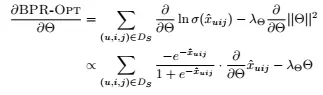 求各自的偏导,这里的f时(u, i ,j)三元祖的关系x~uij~。 可以简单有x~uij~=x~ui~-x~uj~