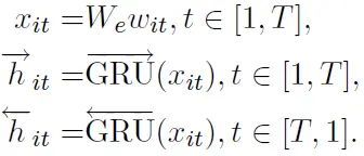 句子层面和词层面基本相同 双向GRU输入,softmax计算attention