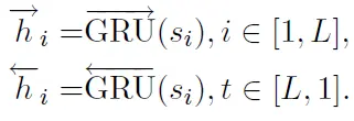 首先是词层面: 输入采用word2vec形成基本语料向量后,采用双向GRU抽特征: