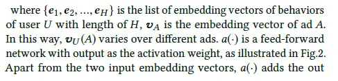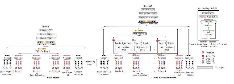 Diversity:用户在浏览电商网站的兴趣多样性。 Local activation: 由于用户兴趣的多样性,只有部分历史数据会影响到当次推荐的物品是否被点击,而不是所有的历史记录。
