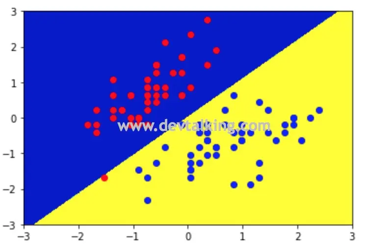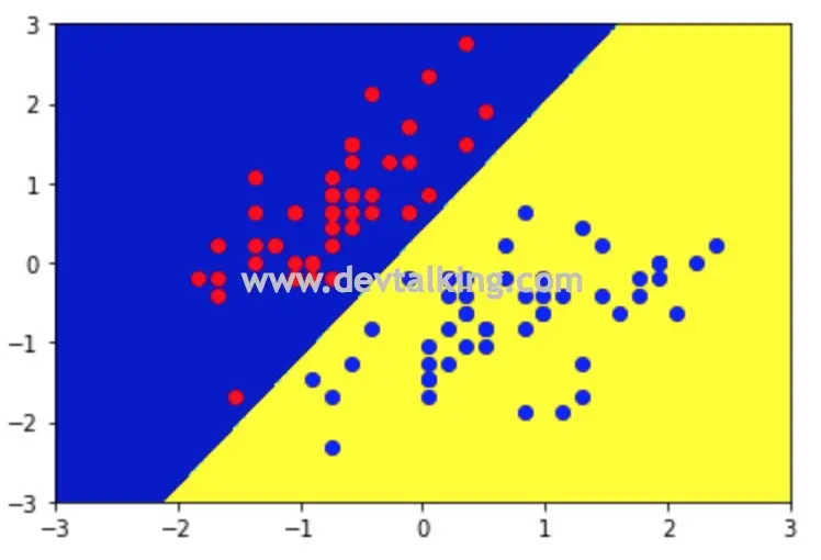 ,然后将这些点连起来,就绘制出了决策边界的直线: