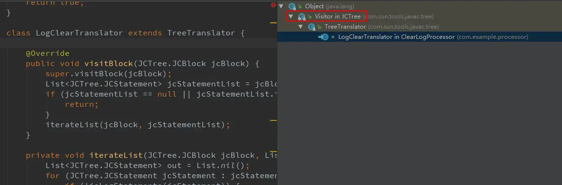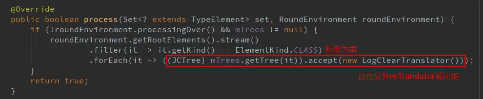 在注解处理器的 process 函数中,我们扫描所有的类,实现一个自定义的 TreeTranslator。