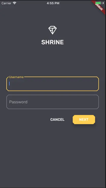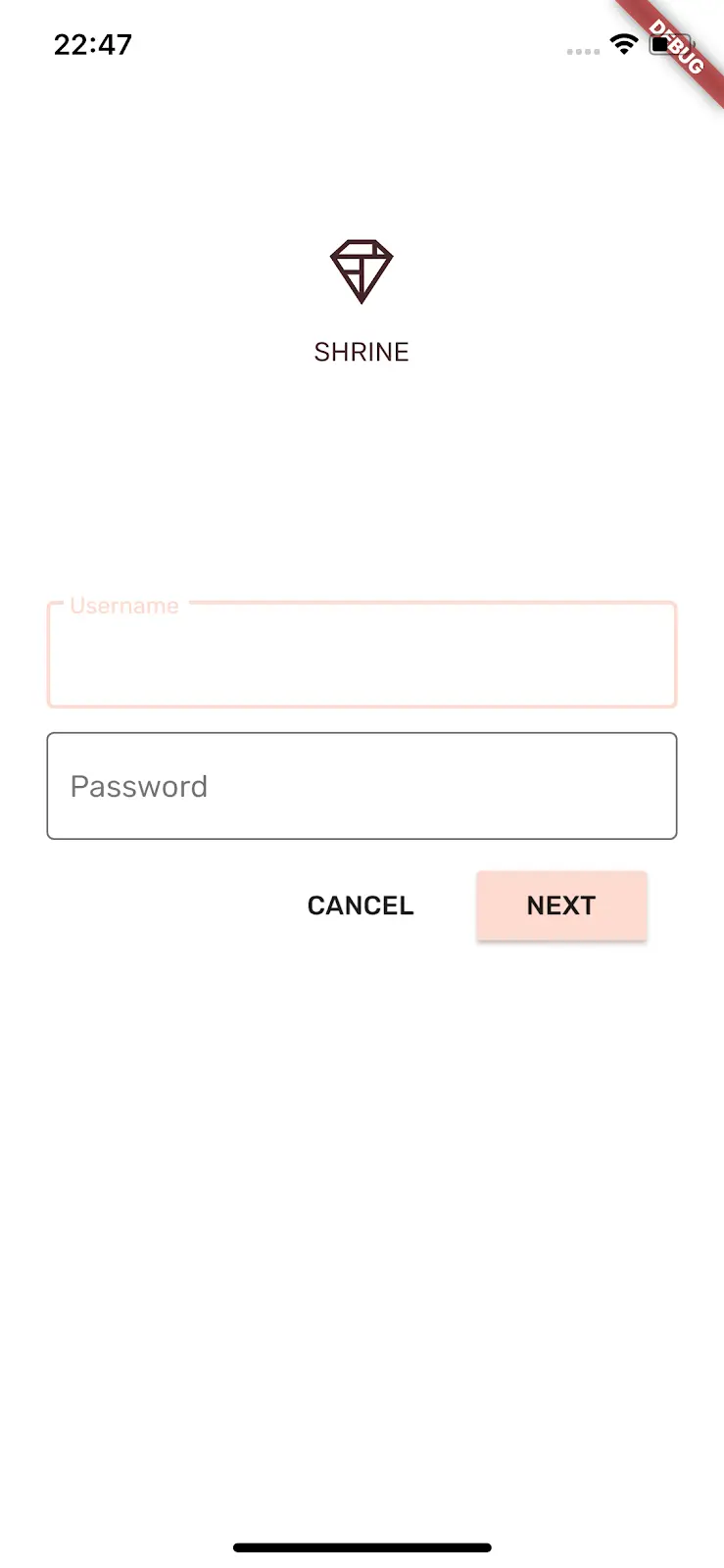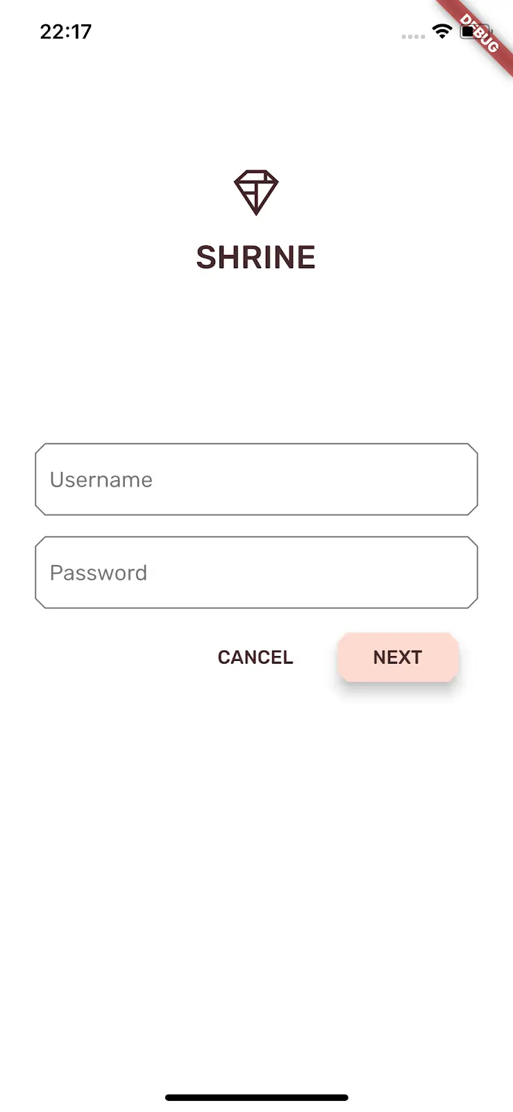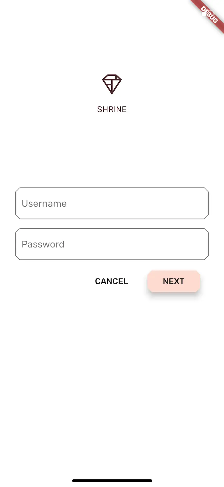 Shrine 定义了八角形或矩形的元素,它具有酷炫的几何风格。让我们在主屏幕上的卡片以及登录屏幕上的文本字段和按钮中实现形状样式。