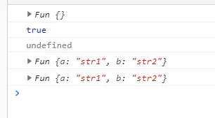 再来看一下,直接执行Fun的返回结果,代码不做修改,直接执行 Fun('str1', 'str2')