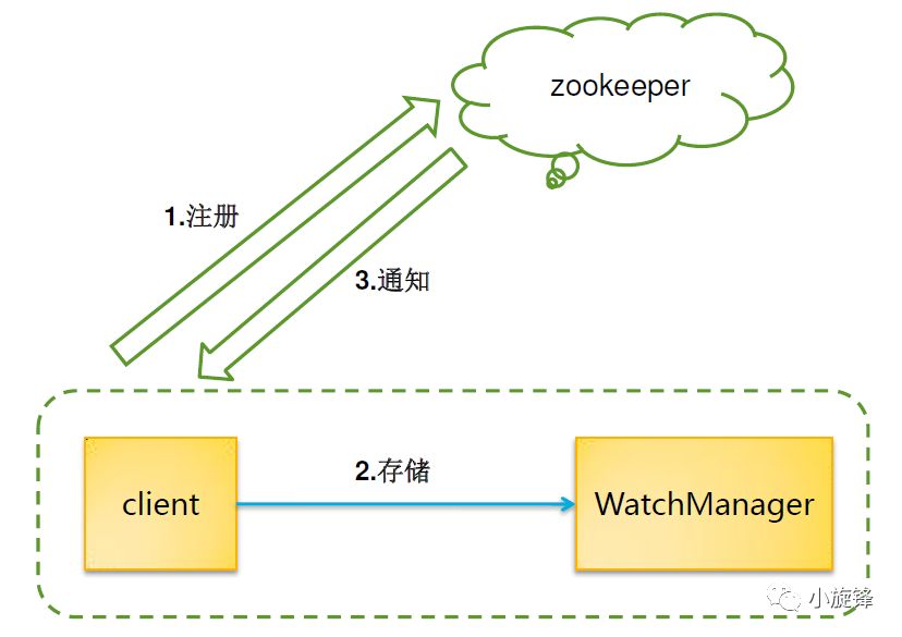 Zookeeper的watcher机制主要包括客户端线程、客户端WatchManager、Zookeeper服务器三个部分。其工作流程简单来说:客户端在向Zookeeper服务器注册Watcher的同时,会将Watcher对象存储在客户端的WatchManager中;当Zookeeper服务器端触发Watcher事件后,会向客户端发送通知,客户端线程从WatchManager中取出对应的Watcher对象来执行回调逻辑