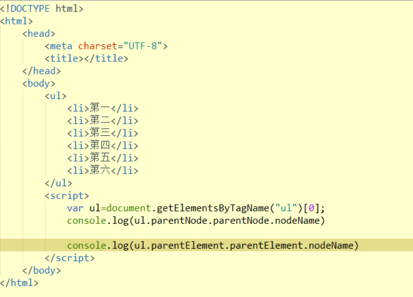 HTML。然而再往上一层,就是根部document,并不是元素,执行下面代码: