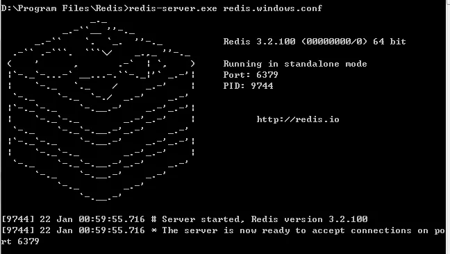 进入redis目录,打开cmd,然后执行以下命令,redis服务就跑起来了~