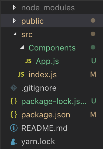 Create a folder named Components in the src folder. Create a file named App.js in Components.