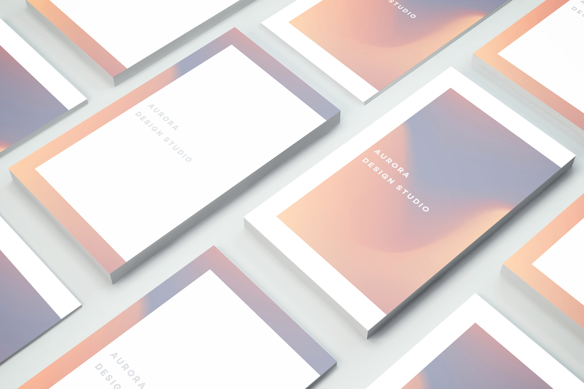 网格渐变可以用作独立模式。由于它们通常具有动态外观,因此可以作为简约模式应用,并辅以创意印刷术。