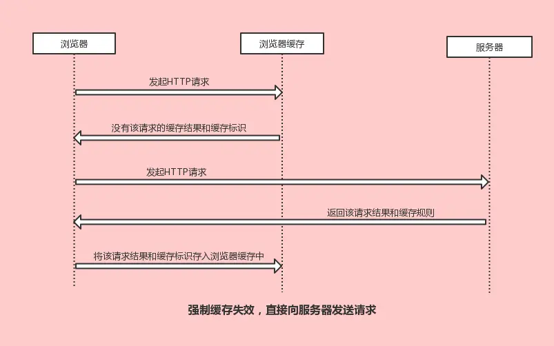 【1】不存在该缓存结果和缓存标识,强制缓存失效,则直接向服务器发起请求(跟第一次发起请求一致),如下图: