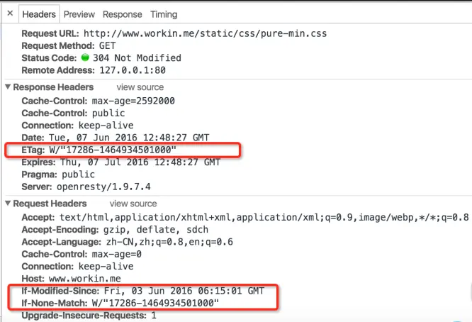 同样,协商缓存的标识也是在响应报文的HTTP头中和请求结果一起返回给浏览器的,控制协商缓存的字段分别有:Last-Modified / If-Modified-Since / Etag / If-None-Match,注:Etag / If-None-Match优先级高于Last-Modified / If-Modified-Since,同时存在则只有Etag / If-None-Match生效。