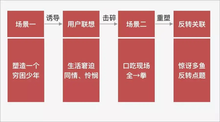 极度短平快,但又出乎意料的案例,在这个案例中同样是先构建了“口吃男孩的形象”,然后在你始料未及的时候用第二个故事打破它。