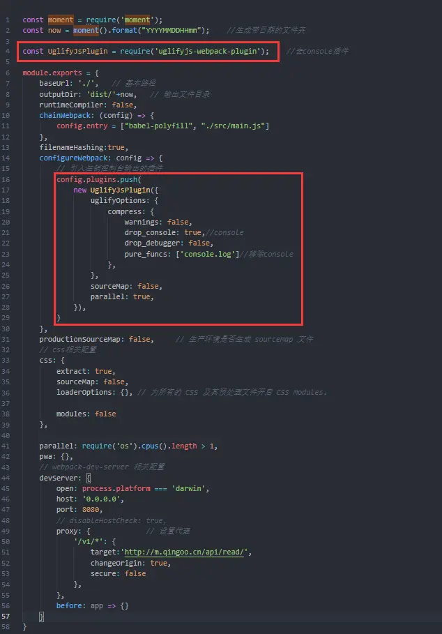 const UglifyJsPlugin = require('uglifyjs-webpack-plugin'); //去console插件