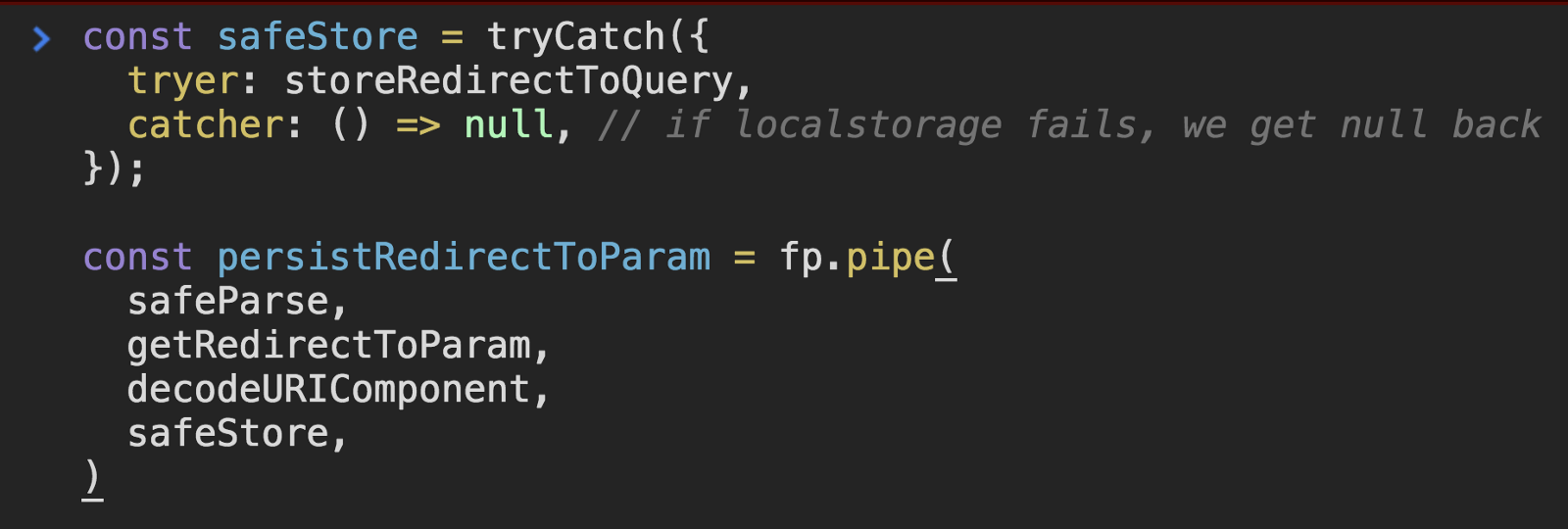 好的。现在,似乎 persistRedirectToParam 函数是 4 个其他函数的“组合”让我们看看我们是否可以将此函数编写为合成,从而消除我们存储为 const 的中间结果。