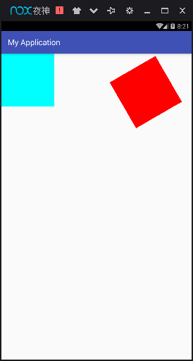 mPaint.setColor(Color.CYAN); canvas.drawRect(new Rect(0, 0, 200, 200), mPaint); mPaint.setColor(Color.RED); canvas.scale(0.5f, 0.5f); canvas.drawRect(new Rect(300, 300, 500, 500), mPaint);