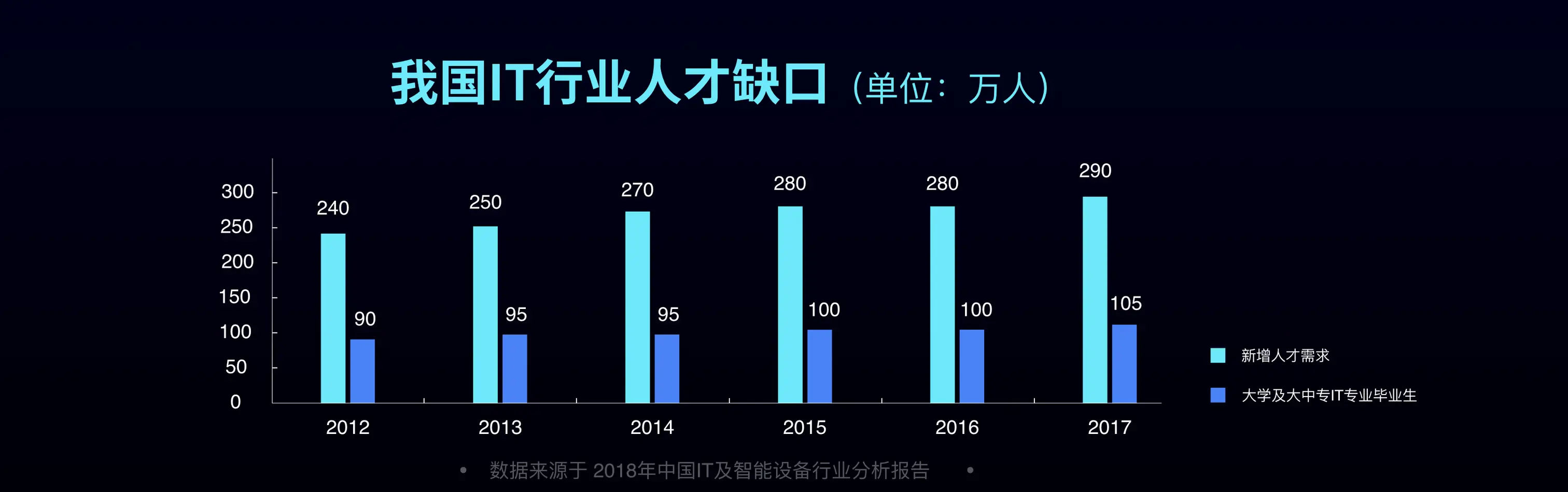 中国每年的 IT 行业人才缺口基本固定在 100 万左右,虽然一部分缺口会通过社会培训之类的方式填补,但总的来说缺口依然很大。这就要求企业必须在研发效率上有所提升。