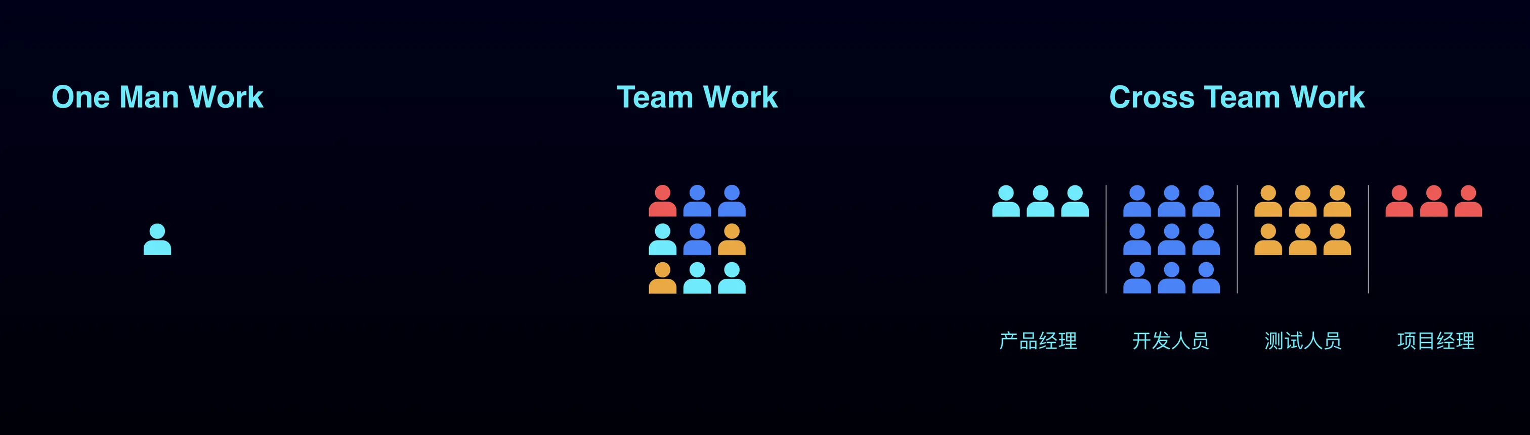 而现有的组织架构却因为落后的管理导致效率很难提升,软件开发最高效的组织形式是“One Man Work”,只有一个人干活,写个小项目,从需求到开发,从测试到部署全部独立完成,非常高效。但随着业务的增长,项目开始逐渐变得庞大,变成团队,出现了分工,出现了产品经理、项目经理、开发、数据、测试、运维等等角色。这些角色间存在天然的工作目标上的矛盾。举个例子,对于运维来说,稳定压倒一切,新 Feature 越少越好。而对于研发来说,却希望能开发更多的功能。这种矛盾会导致大量资源和时间的浪费。就像两匹马拉一辆车,如果马头向着的方向不一致,肯定是没法全速前进的。