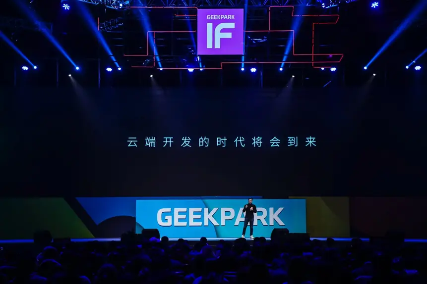 这极大地提高了编码环节的开发效率,我们可以想象刚才展示的流水线上的工具都在发生同样的演进,这将促使我们进入一个新的开发时代,那就是云端开发时代 。我们相信开发的效率会成倍提升,满足这个数字化社会对于 IT 效率的要求。同时开发门槛也会降低,云技术将使这些工具触手可及。
