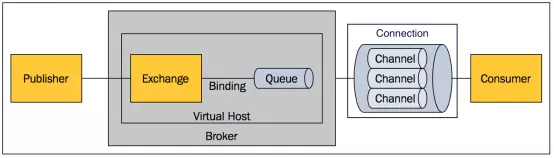 AMQP 中消息的路由过程和 Java 开发者熟悉的 JMS 存在一些差别,AMQP 中增加了 Exchange 和 Binding 的角色。生产者把消息发布到 Exchange 上,消息最终到达队列并被消费者接收,而 Binding 决定交换器的消息应该发送到那个队列